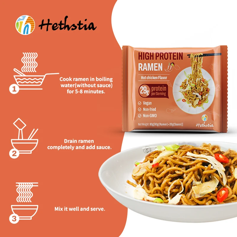 Non Fried High Protein Ramen Spicy Chicken Flavor 29g Protein Vegan Instant Noodles Healthy Choice